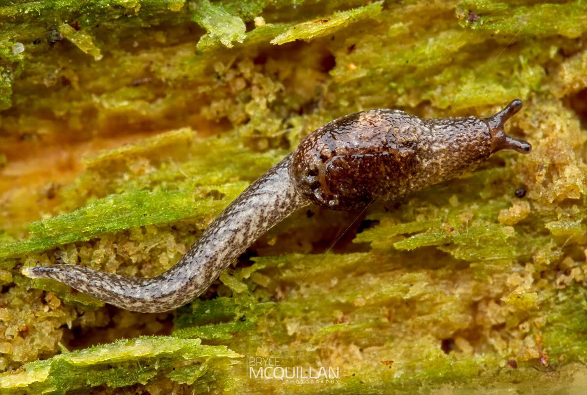 Native slugs are usually found in damp habitats and are thought to feed mainly on algae and fungi on the surface of plants. They are a distinctive part of New Zealand’s native invertebrate fauna and are often well camouflaged in their environment.