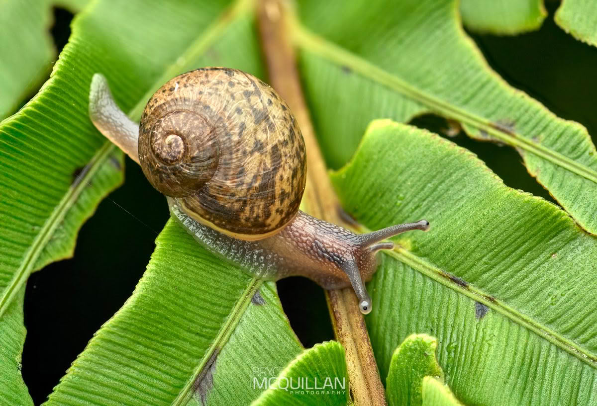 Native snails are most often found in damp habitats such as leaf litter, forest floor debris, and around streams, where they help recycle organic matter, and in some species, hunt other small invertebrates.