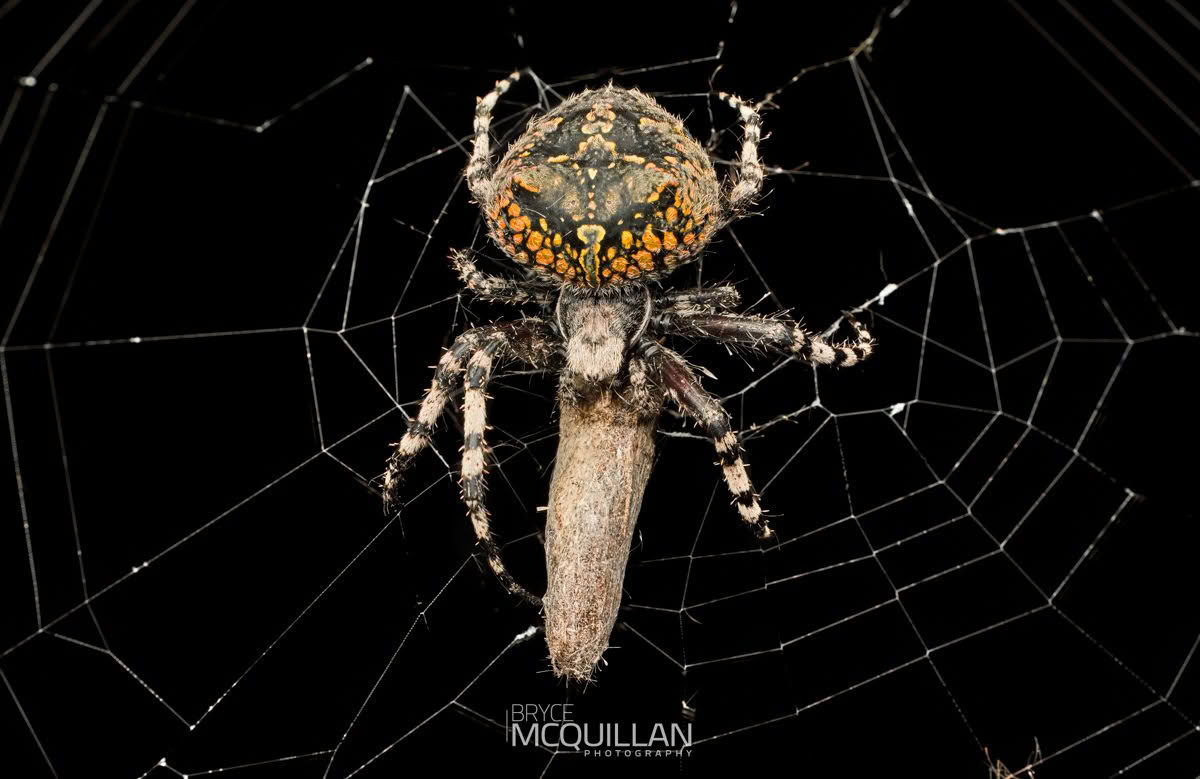 Courtaraneus orientalis is New Zealand’s largest endemic orb-weaving spider. It is usually found in scrub and forest-edge habitats, where it builds a large circular web, in some cases up to 2 m wide.