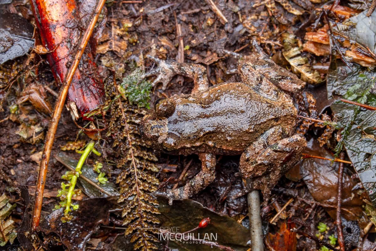 This species is nocturnal and well camouflaged, with brown and olive tones that help it blend into leaf litter and streamside rocks. Unlike New Zealand’s other native frogs, Hochstetter’s Frog has partly webbed feet, which suits its close association with streams.