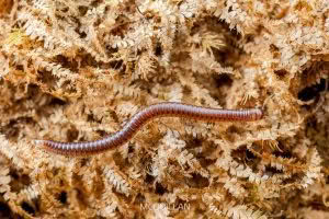 New Zealand millipedes are commonly found in damp places such as under logs, bark, and leaf litter, where they shelter during the day and come out to feed at night.