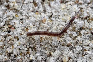 Millipedes mainly feed on decaying plant material and help break down organic matter. They are most active in moist conditions and do not tolerate dry environments well.