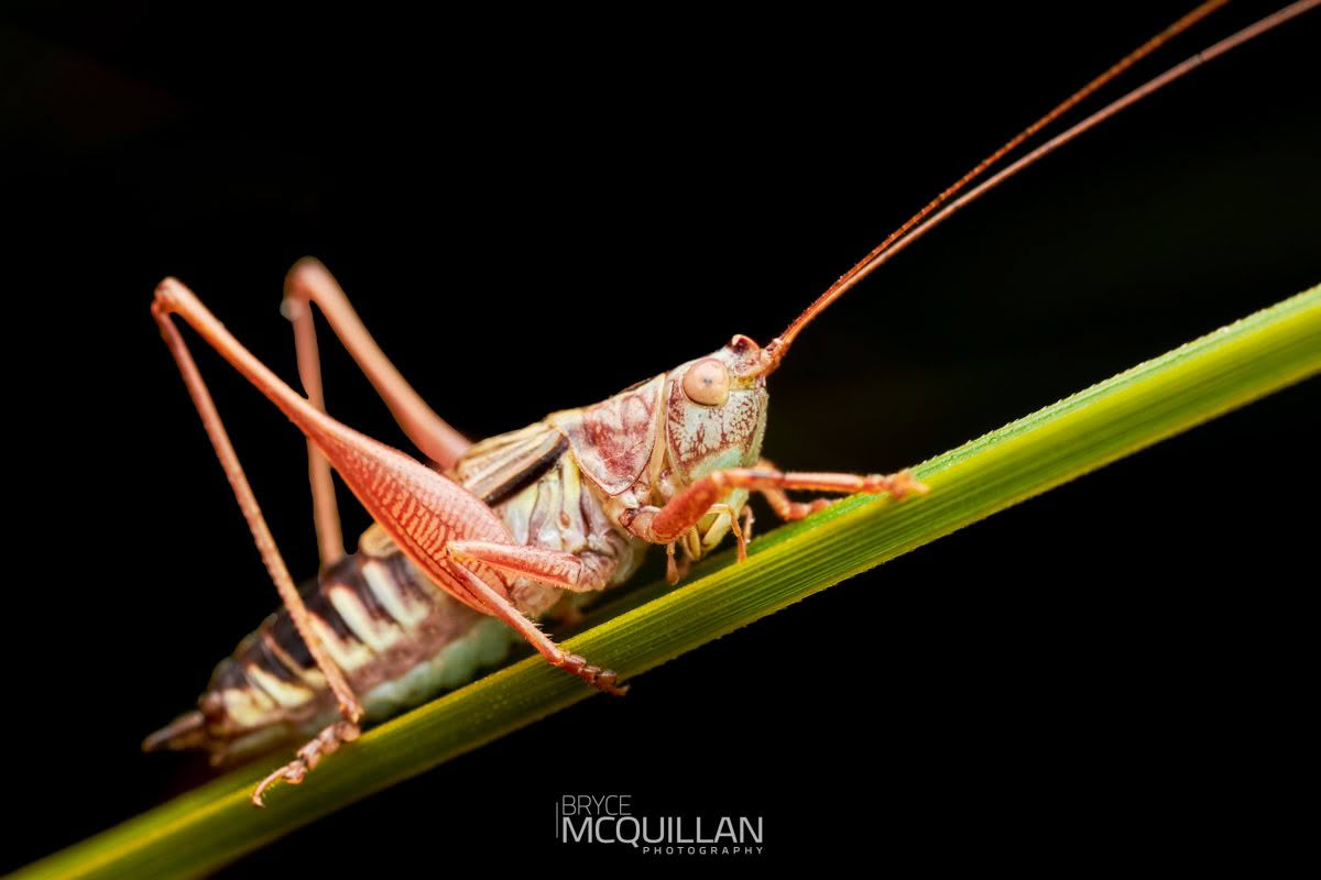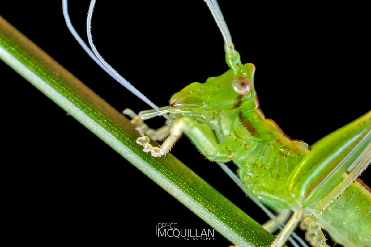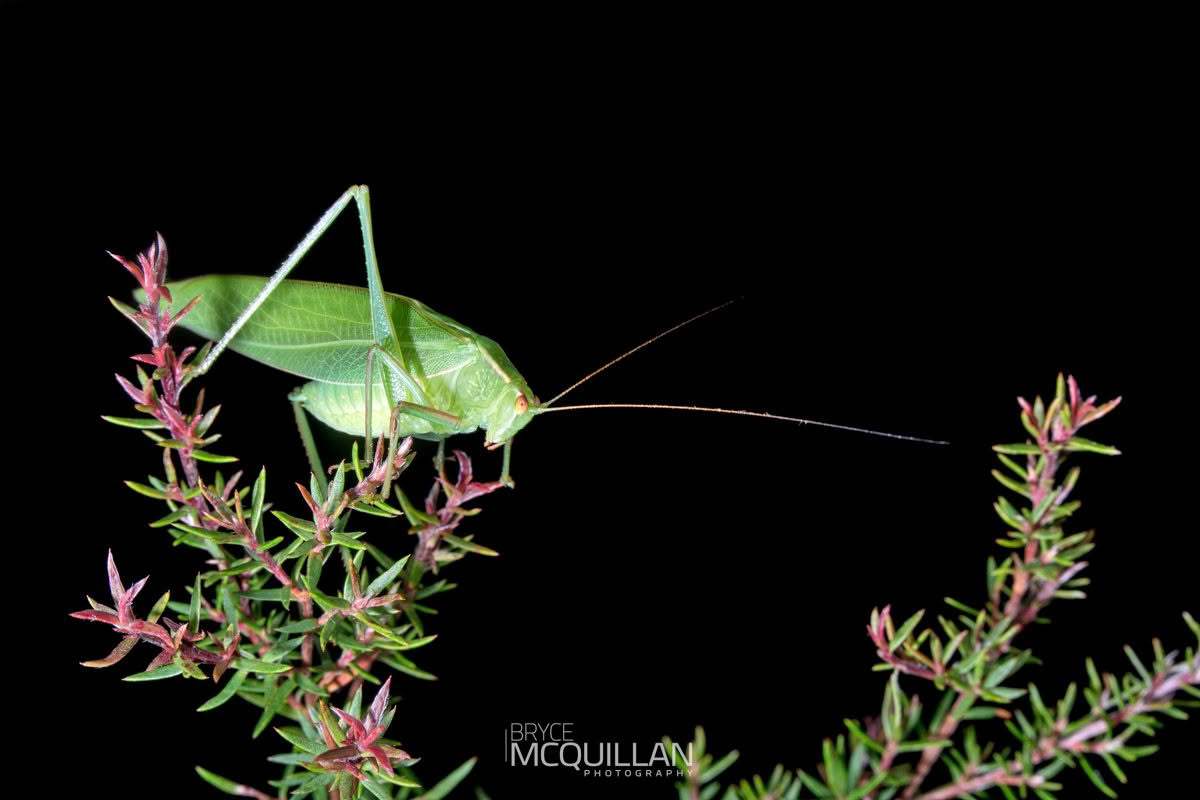 New Zealand katydids are a small part of our wider Orthoptera fauna and include both endemic and introduced species. They are usually recognised by their long antennae, leaf-like appearance, and habit of living among grasses, shrubs, and other vegetation.