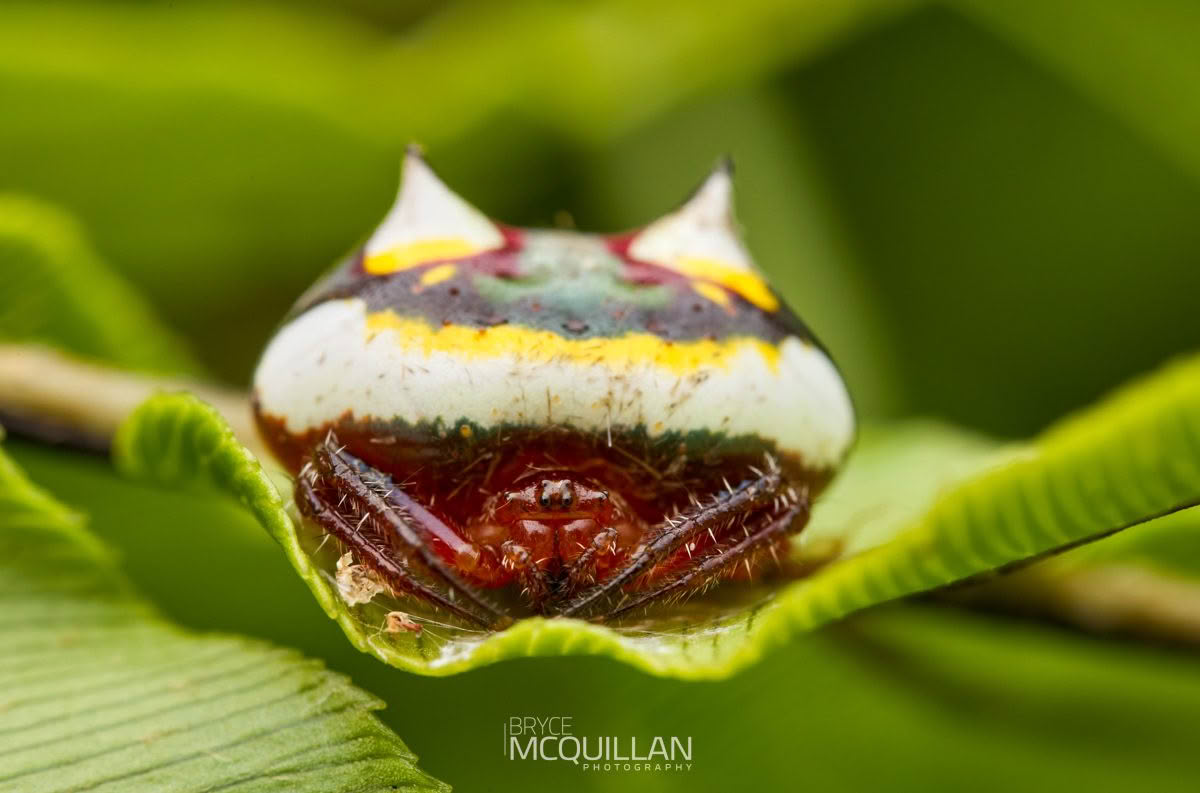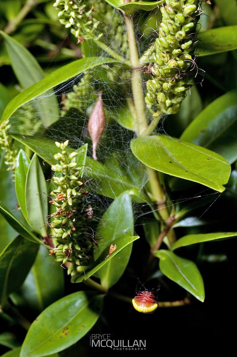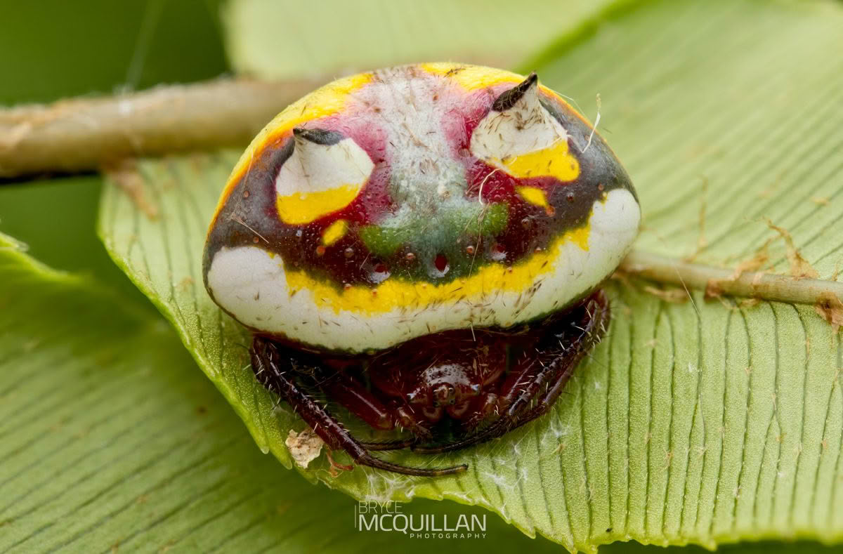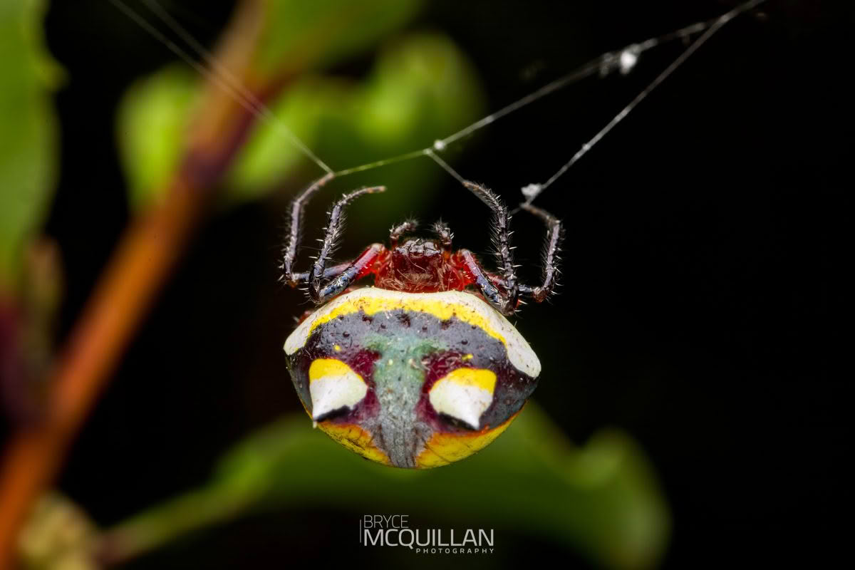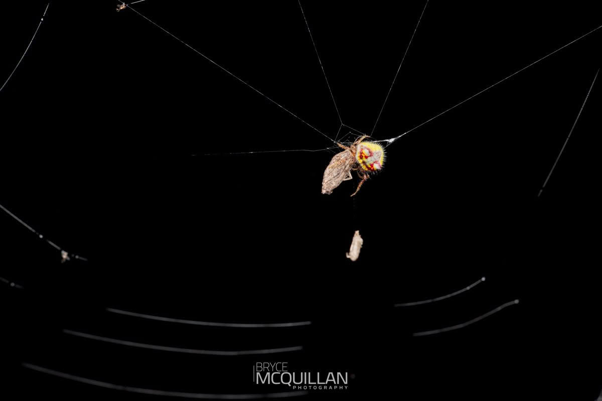 This species is mainly active at night, when it builds a circular orb web to catch flying insects. During the day, females often rest on the underside of leaves, where their shape and colour help look a little like bird poo.