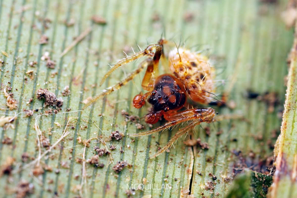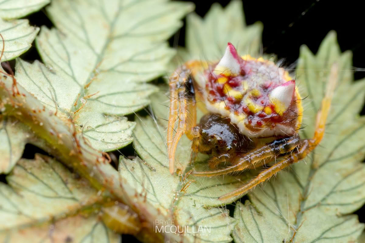 Poecilopachys australasia, commonly known as the Two-spined Spider, is an orb-weaving spider introduced from Australia and recorded in New Zealand since the 1970s. Adult females are small but distinctive, with a broad abdomen marked by two pale spines.